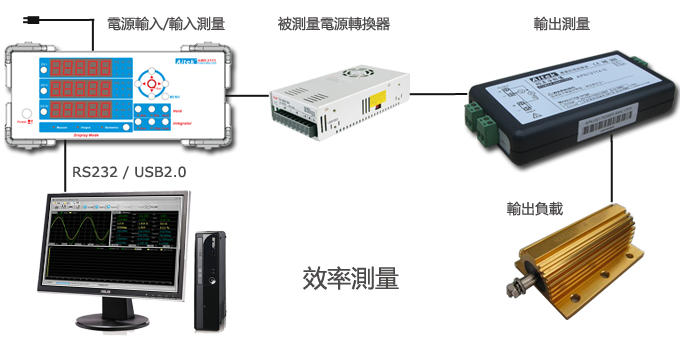 通过和AWE2111系列单相功率分析仪配合,AWE2111作为主机,APN1211作为从机,用RS485联机,还可以轻松测量一个电源转换器或变压器、逆变器的效率,最多支持单路输入六路输出的测量。