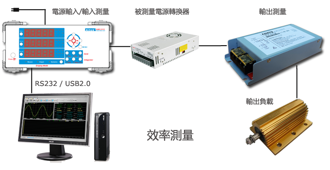 通过和AWE2111系列单相功率分析仪配合,AWE2111作为主机,APN1311作为从机,用RS485联机,还可以轻松测量一个电源转换器或变压器、逆变器的效率,最多支持单路输入六路输出的测量。