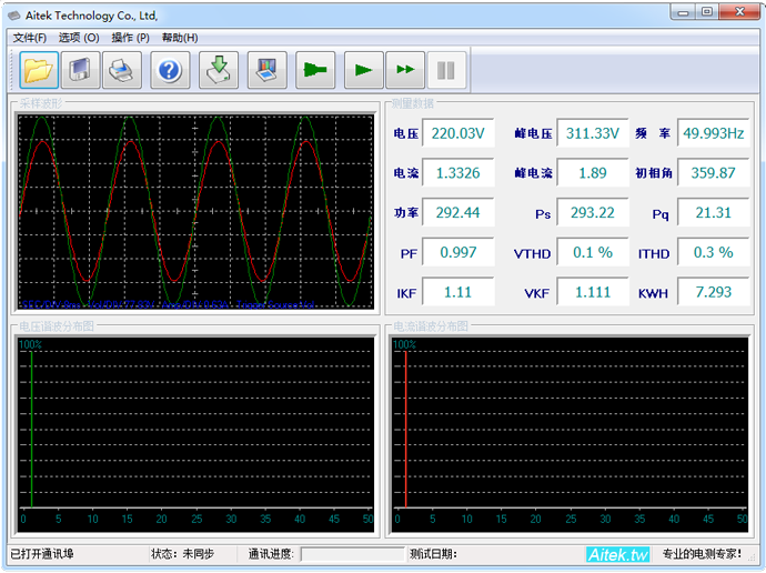 AWE2101系列单相电参数测量仪标配的上位机软件,可以实现测量波形显示、参数记录、测量参数显示、谐波柱状图、谐波报告等显示。